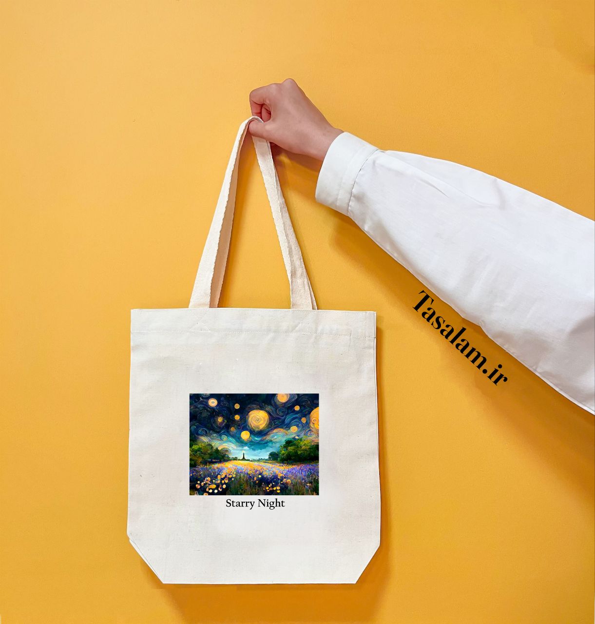ساک دستی پارچهای الیاف طبیعی، طرح شب پرستاره ونگوگ
