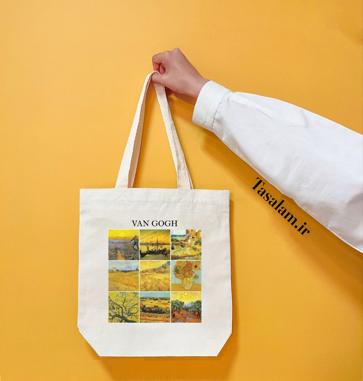 ساک دستی پارچهای الیاف طبیعی، طرح چهل تکه پاییز ونگوگ